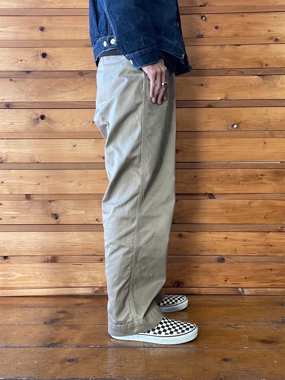 1950年頃の米軍が着用していたモデルがモチーフのシンプルなカーキトラウザーです。