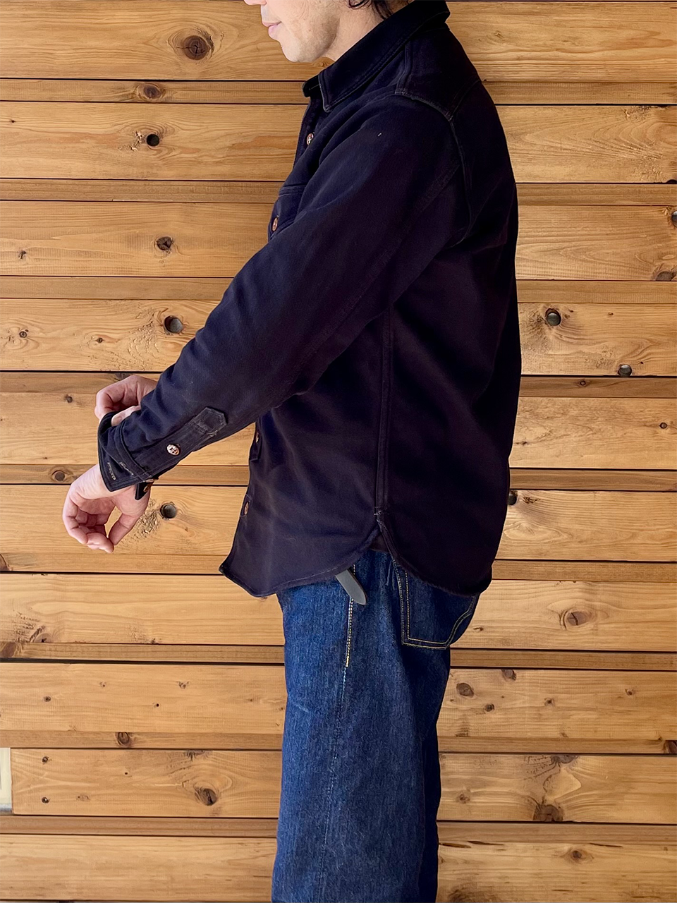 広めの身幅と短めな着丈という日常的に使う上で理想的なシルエット、さらにはフロントポケットや背中のヨークなど、各所に特徴的なデザインが盛り込まれていて、非常に雰囲気のあるシャツとなっています。