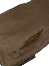 胸元にはステッチのDポケット、内側のやや下部にスマートフォンが入るサイズのポケットが付属、さらには背面に片側ファスナー式の大ぶりなポケットが付いているなど、収納力が非常に高いので、鞄を持ちたくない、荷物量を抑えめにしたいときに大変重宝する仕様になっています。
