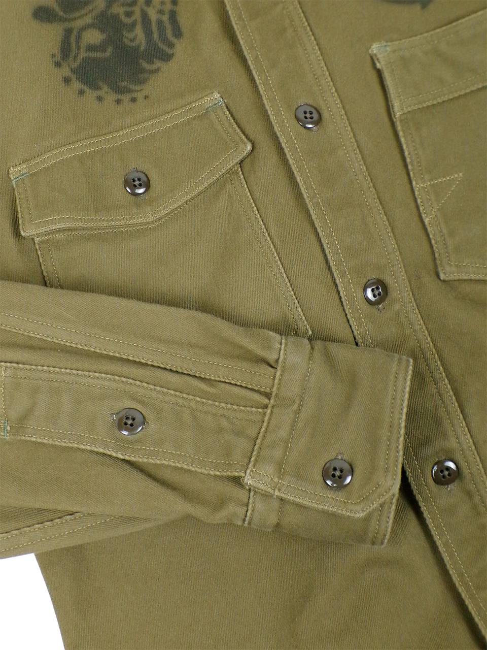 クラシカルなワークシャツにミリタリー要素をブレンドした、フリーホイーラーズらしさ溢れるミリタリーワークシャツ!
