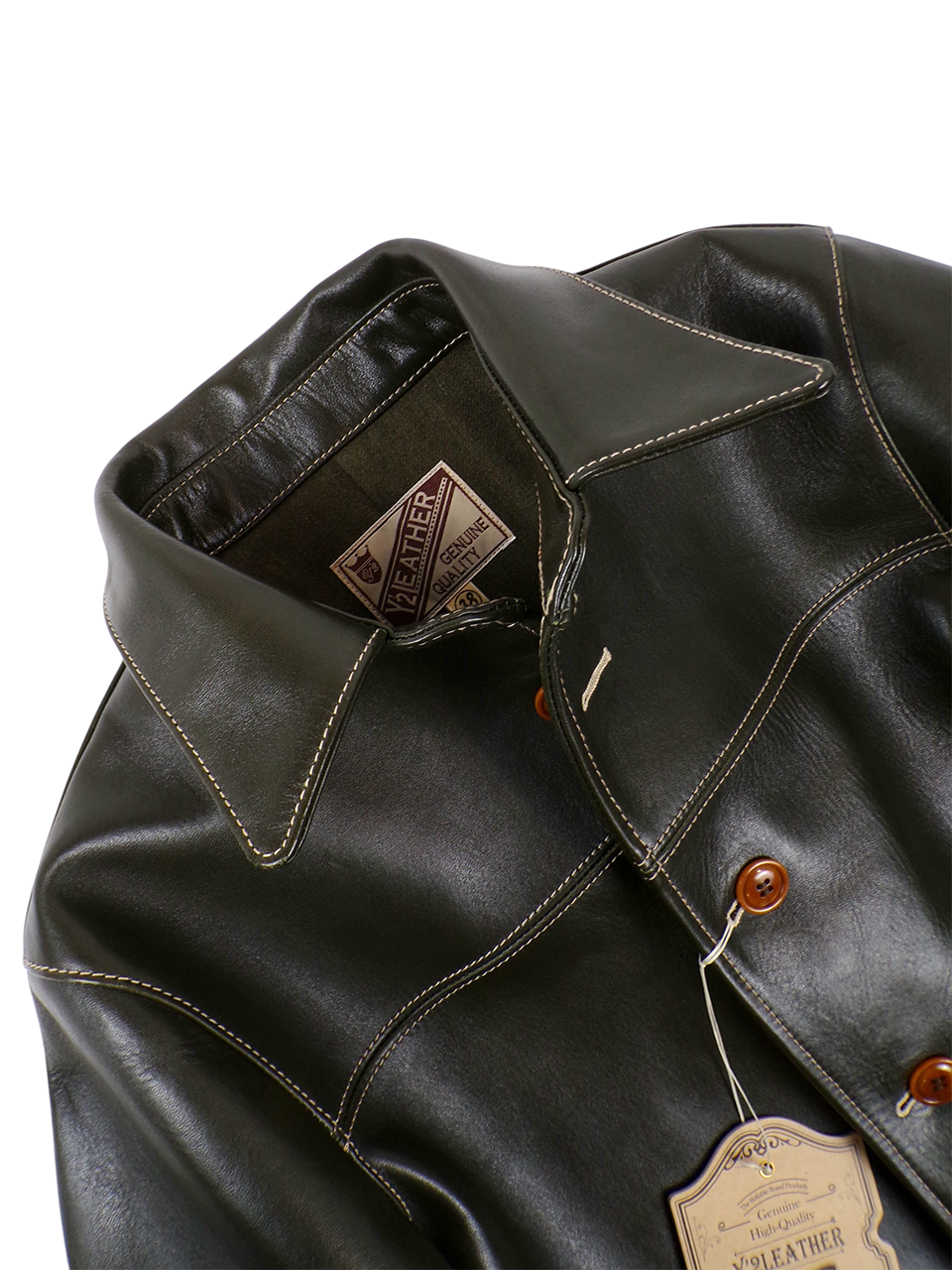 【Y'2 LEATHER】 ECO HORSE 30'S CAR COAT (OLIVE) EC-76 〔SIZE : 38~42〕