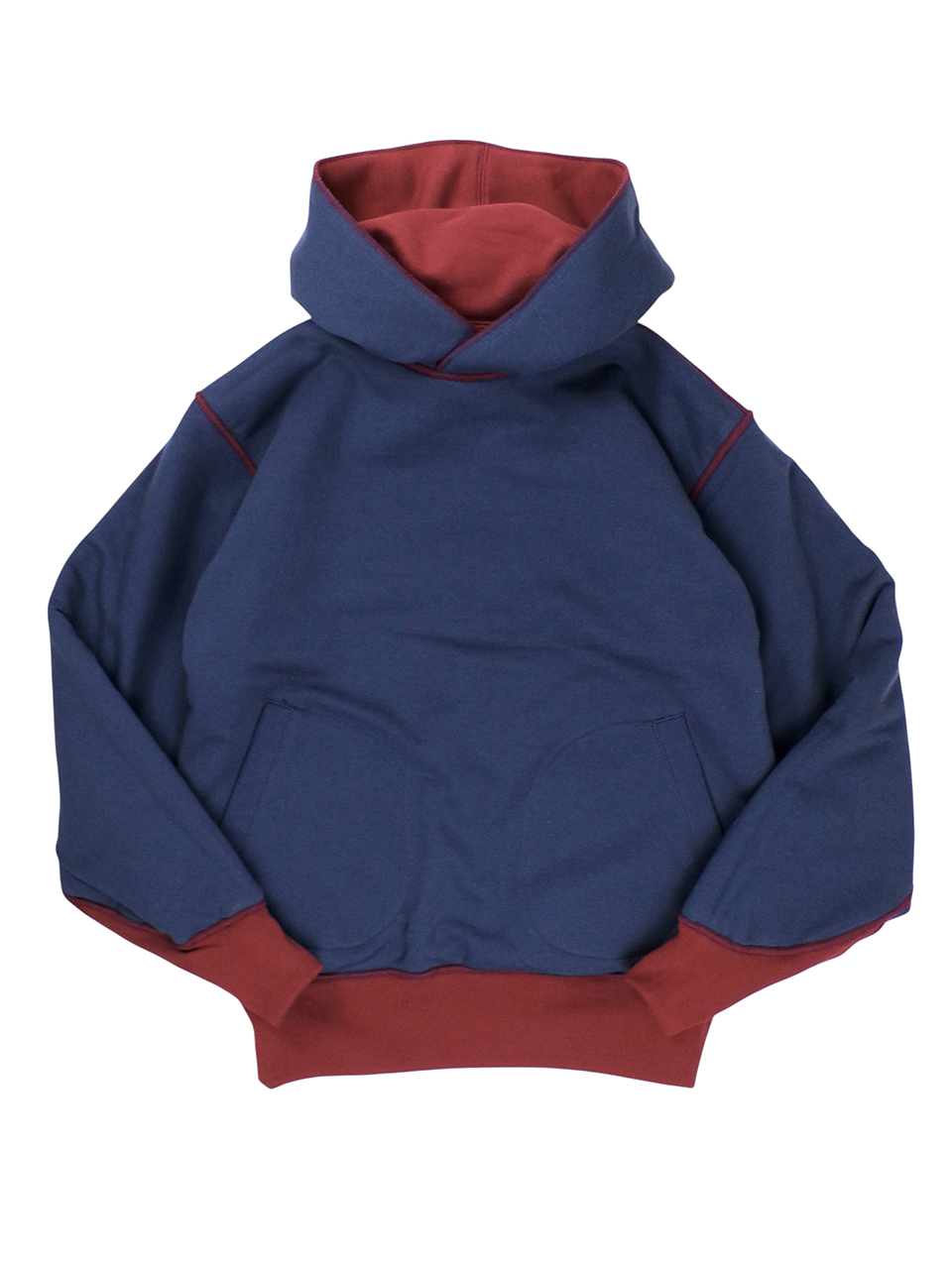 【FREEWHEELERS and COMPANY】 "DOUBLE FACE ATHLETIC HOODED SWEAT SHIRT" (DARK CRIMSON × OLD NAVY) #2534012