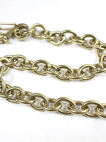 チェーン本体はシンプルな形状ながら、絶妙なボリューム感と真鍮の独特な色感が目立ちすぎない絶妙なアクセントになってくれます。