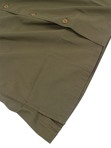 裾はスリット入りのボックスシルエット、ワークシャツらしさもありながら普段着に使いやすいスペックになっています。